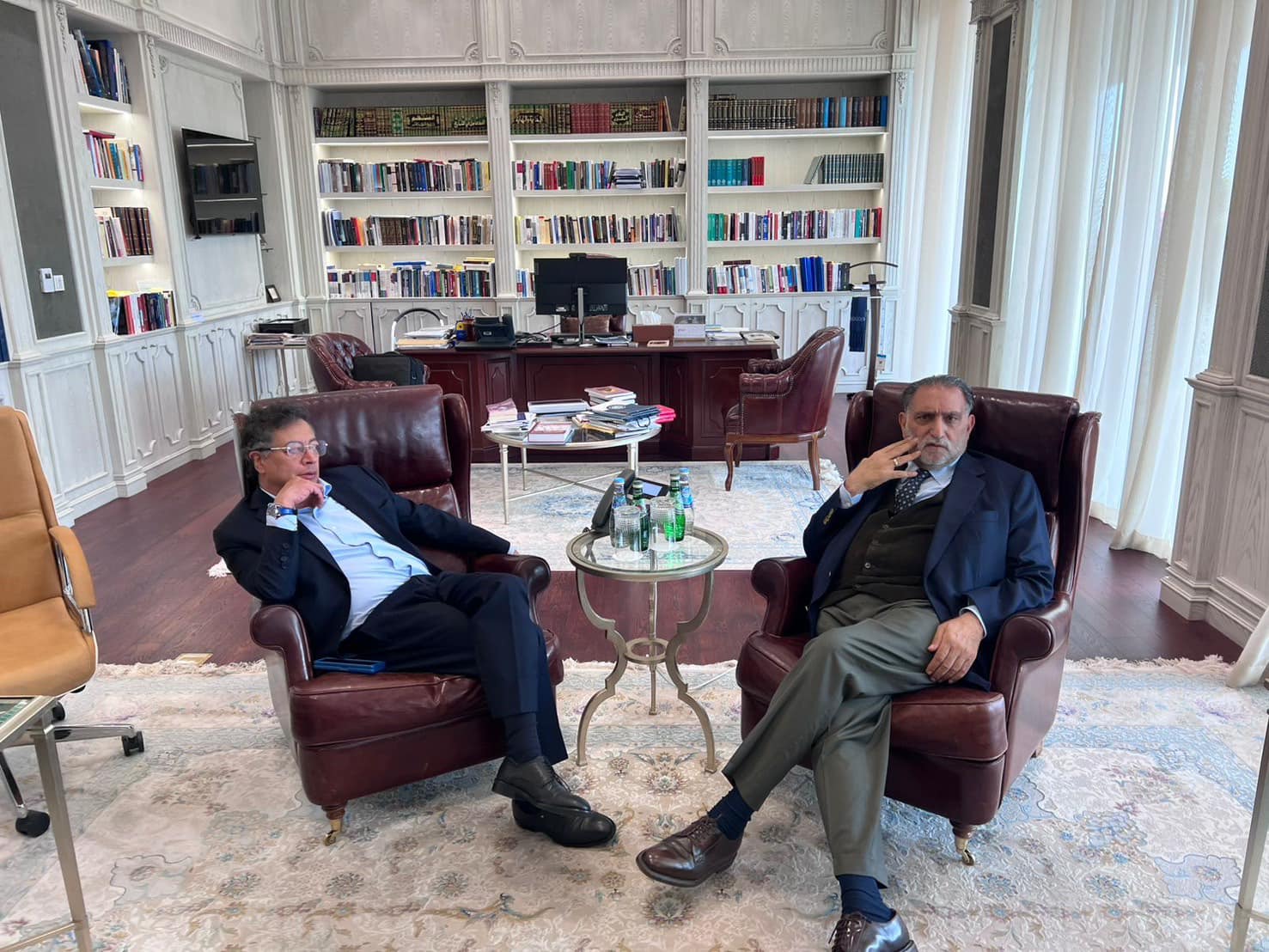 خلال اللقاء الذي جمع الرئيس الكولومبي غوستافو بيترو والدكتور عزمي بشارة، مدير المركز العربي للأبحاث والدراسات السياسة في الدوحة، قطر، تم بحث الحاجة الملحة لإقامة تحالف فكري بين مراكز الأبحاث الكولومبية والعربية.